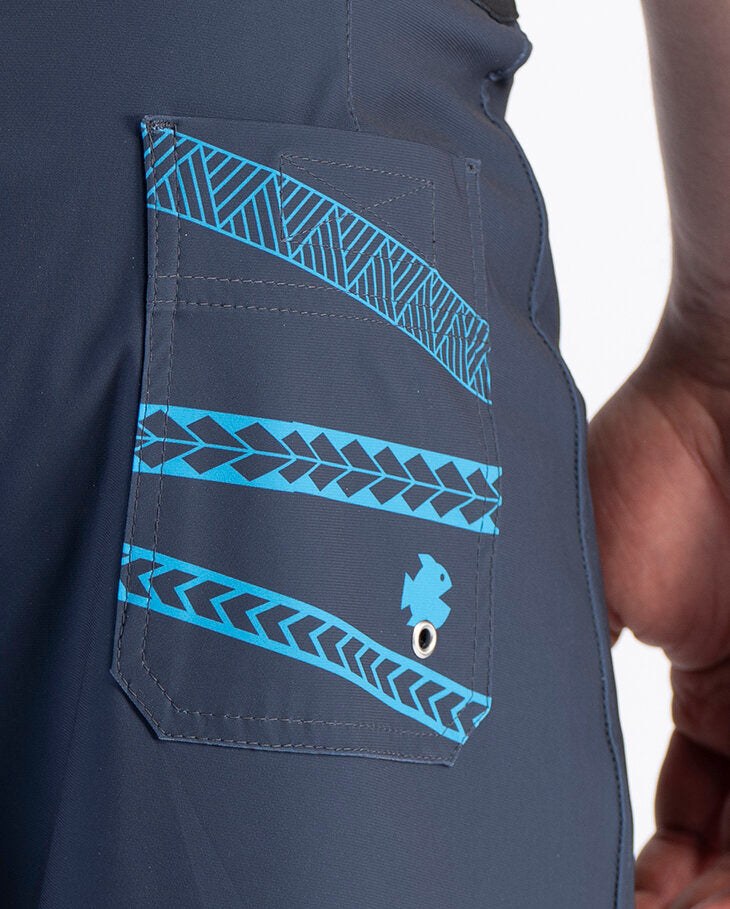 Board shorts with ocean warriors Maori tribe-inspired pattern, perfect for all kind of water sports and just hanging out.