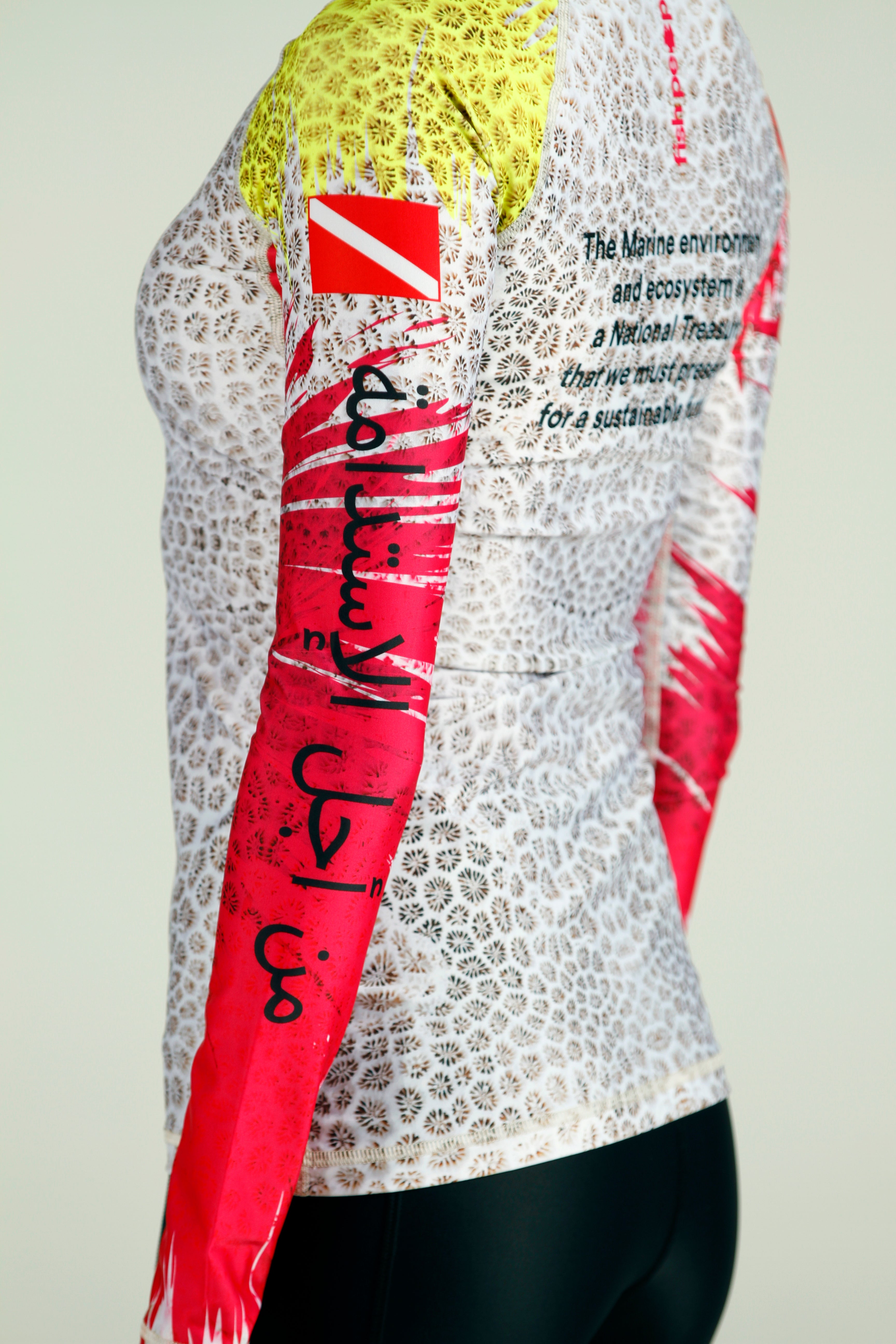 This limited-edition rash guard is part of a global collaboration with ocean enthusiasts from Germany, Oman, Thailand, and the UAE - united under ONE message: protect our corals, protect our future.