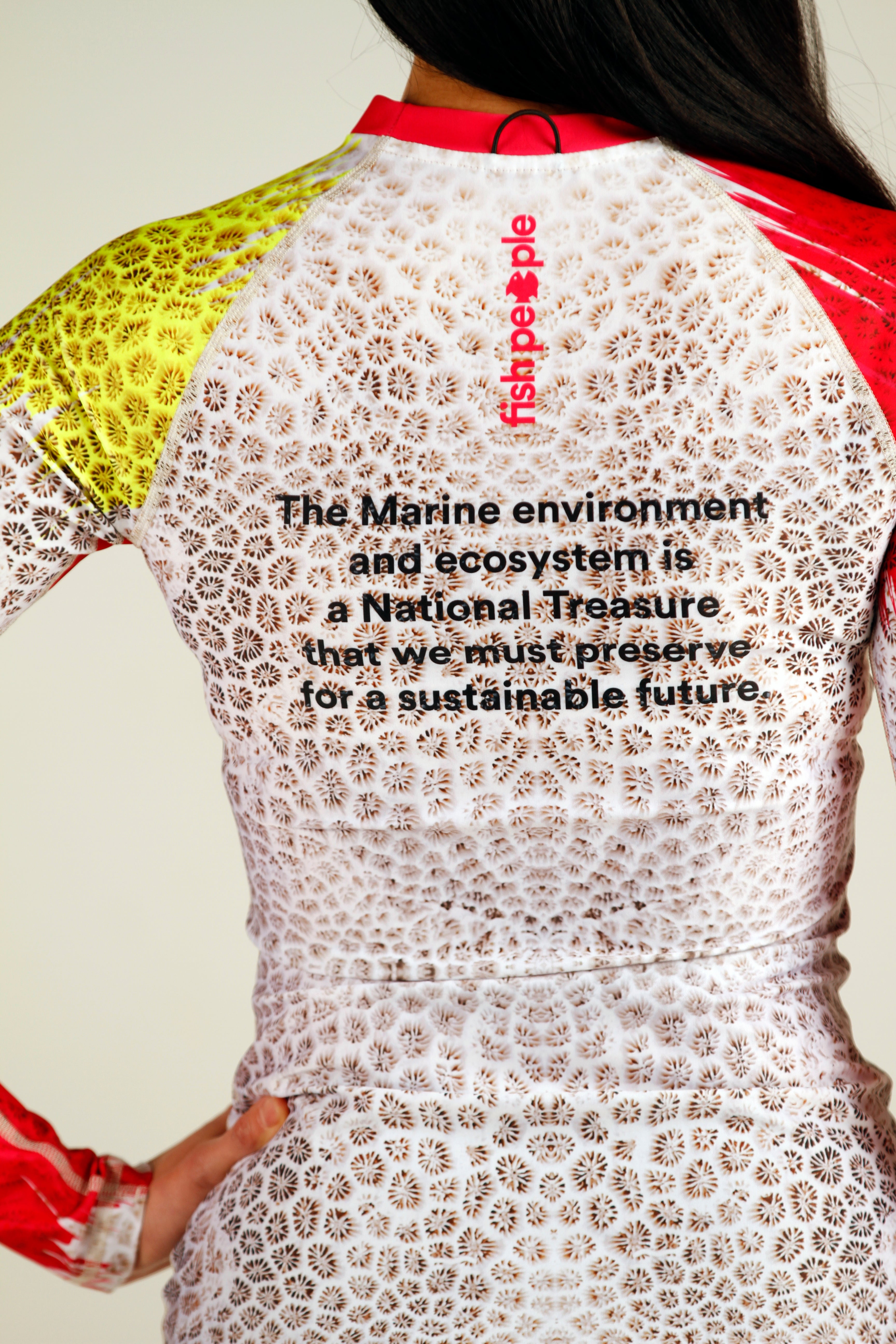This unique rash guard is a collaboration between Fishpeople ocean wear and Coralife Restoration Team, an NGO working on the east coast of the UAE to restore damaged reefs, monitor coral health, and educate communities about the importance of conservation.