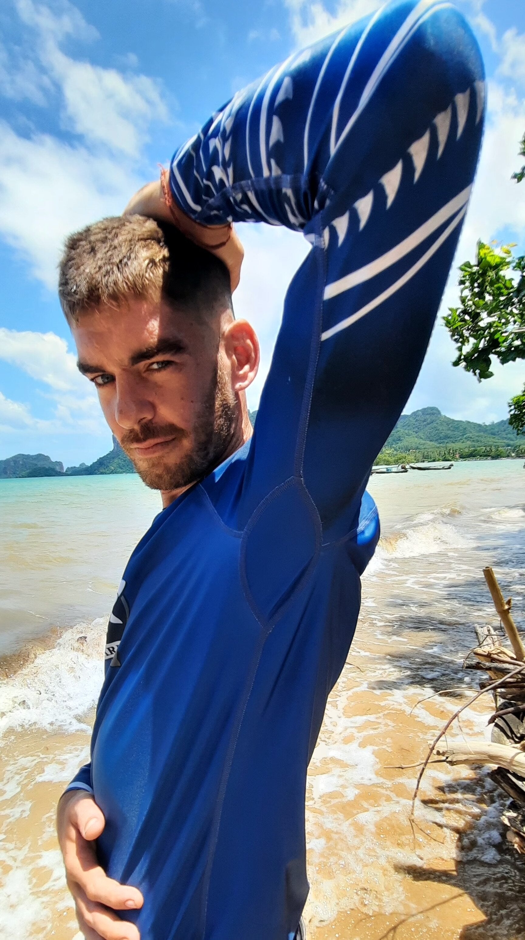 Second-skin feel, protective against sun rays, jellyfish stings, and itchy plankton. Provides an additional warmth layer wearing under the wetsuit.